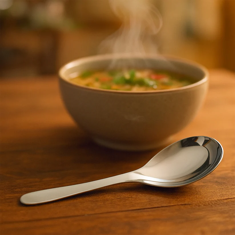 soup spoon, serving spoon, stainless steel spoon, dining spoon, table spoon, eating spoon, kitchen spoon set, dessert spoon, reusable spoon,kitchen cutlery set, dining table spoon,curved soup spoon, stainless steel soup ladle,multipurpose dining spoon, traditional style soup spoon