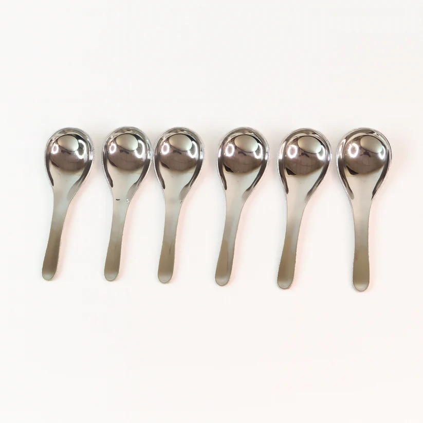 Set of 6 premium stainless steel soup spoons.