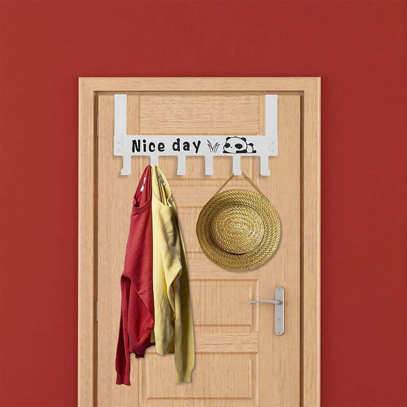 Heavy-Duty Carbon Steel Cartoon Nice Day Over Door Hook Hanger Rack, Towel Hanger, Removable Door Hook, Coat, Scarf, Cloths Hanger (1 pc / 6 Hook / White Color)