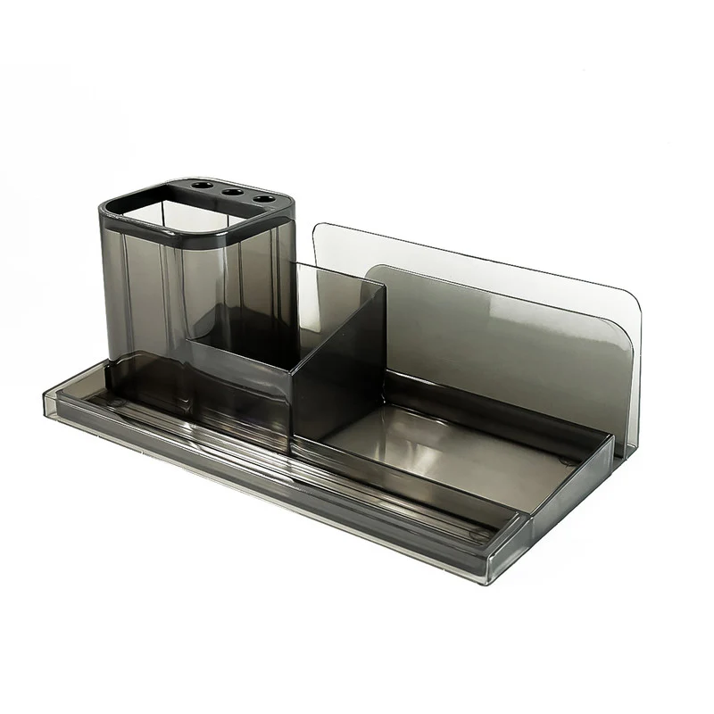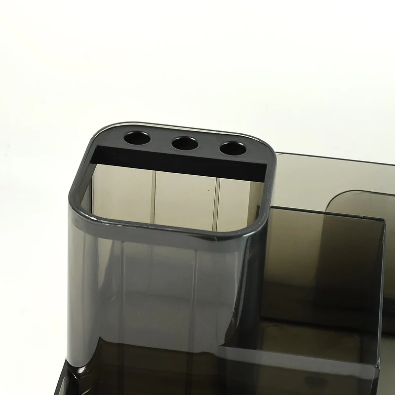 Khyati Desk Organizer – Elegant Smoke Grey Multi-Compartment Stationery229 Holder