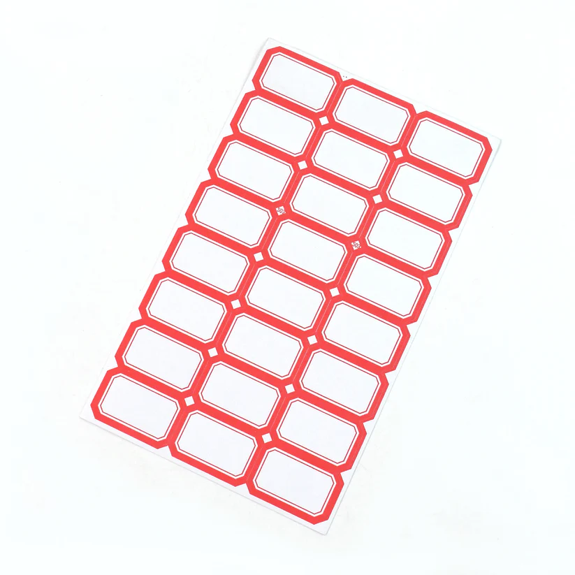 Organize your life with these versatile self-adhesive blank label stickers. Featuring a bold red border for easy visibility, these writable labels stick securely to a wide range of surfaces, making them perfect for use in homes, offices, kitchens, schools, and shops. Whether you’re labeling spice jars, storage boxes, school supplies, or gifting items, these high-quality stickers ensure clarity and style. The labels are easy to write on with pens or markers and remove without leaving sticky residue.